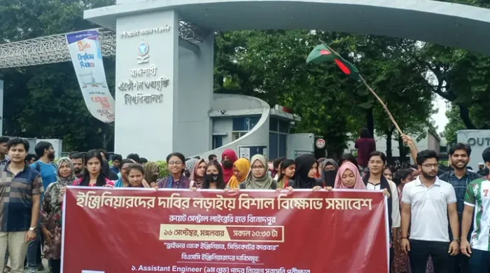 প্রিয়জন ডেস্কঃ বাংলাদেশ রপ্তানি প্রক্রিয়াকরণ এলাকা কর্তৃপক্ষ (বেপজা)-তে এক ড্রাইভারকে উপসহকারী প্রকৌশলী পদে পদোন্নতি দেয়ার প্রতিবাদে এবং বিএসসি ইঞ্জিনিয়ারদের প্রতি বৈষম্য নিরসন ও ৩ দফা দাবির বাস্তবায়নের জন্য রাজশাহী প্রকৌশল ও