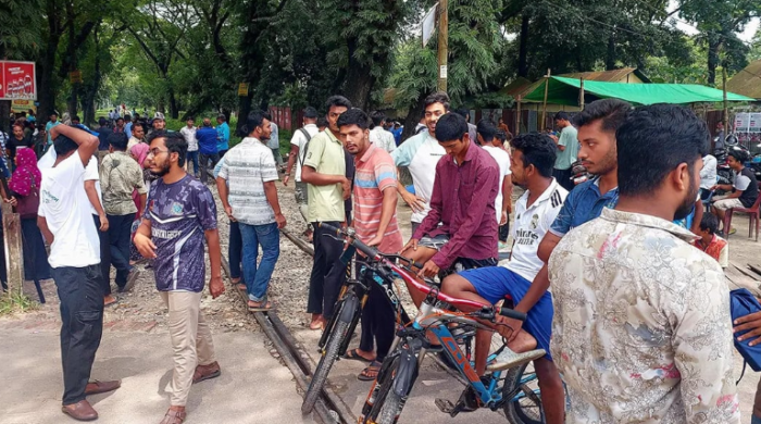প্রিয়জন ডেস্কঃ কম্বাইন্ড ডিগ্রীর দাবিতে বাংলাদেশ কৃষি বিশ্ববিদ্যালয় (বাকৃবি) শিক্ষার্থীরা জব্বারের মোড়ে রেলপথ অবরোধ করেছেন। এতে আজ (মঙ্গলবার, ২ সেপ্টেম্বর) ঢাকা-ময়মনসিংহ রুটে ট্রেন চলাচল সম্পূর্ণ বন্ধ রয়েছে। শিক্ষার্থীদের আন্দোলনে বহিরাগতদের