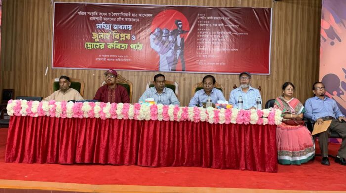 রাজশাহীতে সাহিত্য ভাবনায় জুলাই বিপ্লব ও দ্রোহের কবিতা পাঠ অনুষ্ঠিত হয়েছে। মঙ্গলবার (২৯ অক্টোবর) সকালে রাজশাহী কলেজ মিলনায়তনে পরিচয় সংস্কৃতি সংসদ ও বৈষম্যবিরোধী ছাত্র আন্দোলন রাজশাহী কলেজের যৌথ উদ্যোগে এ আরো পড়ুন