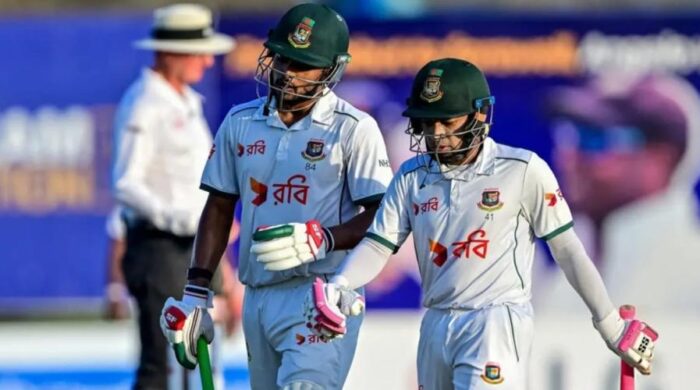 প্রিয়জন ডেস্কঃ শ্রীলঙ্কার বিপক্ষে ১৮৭ রানের লিড নিয়ে চতুর্থ দিন শেষ করেছে বাংলাদেশ। ফিফটি হাঁকিয়ে অপরাজিত নাজমুল হোসেন শান্ত। সেখান থেকেই আজ (শনিবার, ২১ জুন) পঞ্চম ও শেষ দিন শুরু আরো পড়ুন