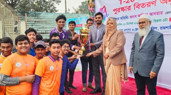 প্রিয়জন ডেস্কঃ রাজশাহী বিভাগীয় আন্তঃকলেজ ফুটবল টুর্নামেন্টের ফাইনালে টানটান উত্তেজনার ম্যাচে নাটোরের বিলচলন শহীদ শামসুজ্জোহা সরকারি কলেজ চ্যাম্পিয়নের শিরোপা জয় করেছে। দর্শকদের প্রাণবন্ত উপস্থিতি, নাটকীয় গোল, লাল কার্ড ও ট্রাইবেকারের