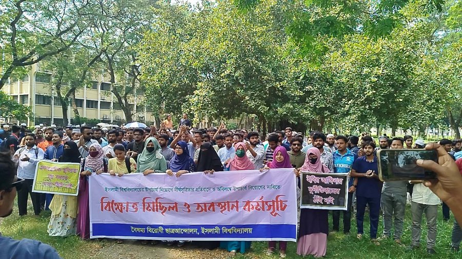 এ সময় শিক্ষার্থীদের হাতে ‘সংস্কারমনা ভিসি চাই’; ‘বিশ্বমানের ভিসি চাই, শিক্ষার্থীবান্ধব ভিসি চাই’; ‘সৎ ও সাহসী ভিসি চাই’; ‘ক্লাস চাই পরীক্ষা চাই, অবিলম্বে ভিসি চাই’; ‘ক্লিন ইমেজের ভিসি চাই’ লেখা সংবলিত প্ল্যাকার্ড ও ফেস্টুন দেখা যায়। এ সময় বৈষম্যবিরোধী ছাত্র আন্দোলনের ইবি সমন্বয়ক এসএম সুইট, সহ-সমন্বয়ক ইয়াশিরুল কবীর, নাহিদ হাসান, তানভীর মণ্ডল, সায়েম আহমেদসহ কয়েকশো শিক্ষার্থী উপস্থিত ছিলেন।